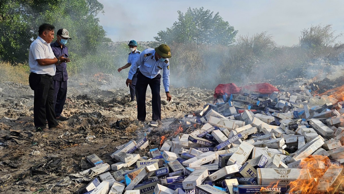 | Ban Chỉ đạo chống buôn lậu, gian lận thương mại và hàng giả tỉnh Tây Ninh (BCĐ 389/TN) do cơ quan thường trực (Cục Quản lý thị trường) chủ trì tổ chức tiêu hủy thuốc lá nhập lậu bị tịch thu năm 2024 với số lượng 62.118 gói - (Ảnh: Cục Quản lý thị trường tỉnh Tây Ninh). |