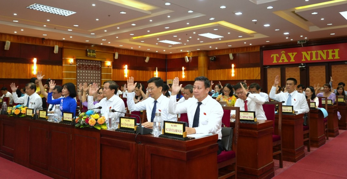 | Các đại biểu HĐND tỉnh Tây Ninh biểu quyết thông qua các Nghị quyết tại kỳ họp (Ảnh: Cổng TTĐT Tây Ninh). |