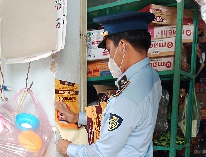 | Quản lý thị trường Tây Ninh dán áp phích thuốc lá tuyên truyền tại các hộ kinh doanh |