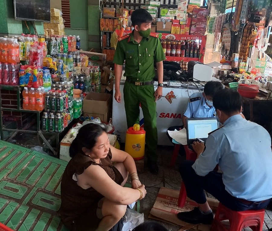 | Lực lượng chức năng lập biên bản đối với hộ kinh doanh tạp hóa Đàm Thị Cúc |