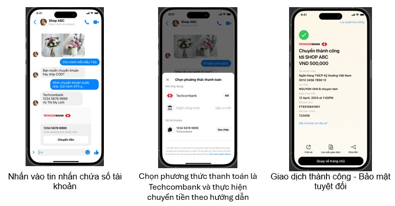 Chị Nguyễn Thị Phương Thảo (30 tuổi, TP.HN) – người dùng đã trải nghiệm tính năng chia sẻ: “Tôi thường xuyên chuyển tiền cho chủ shop khi mua hàng trên Facebook qua Messenger. Trước đây mỗi lần đều phải copy – mở ứng dụng – dán và kiểm tra lại; hoặc lưu mã QR về để quét. Giờ thì chỉ cần một lần chạm là mở luôn Techcombank Mobile với đầy đủ thông tin. Rất tiện lợi và tiết kiệm thời gian.”