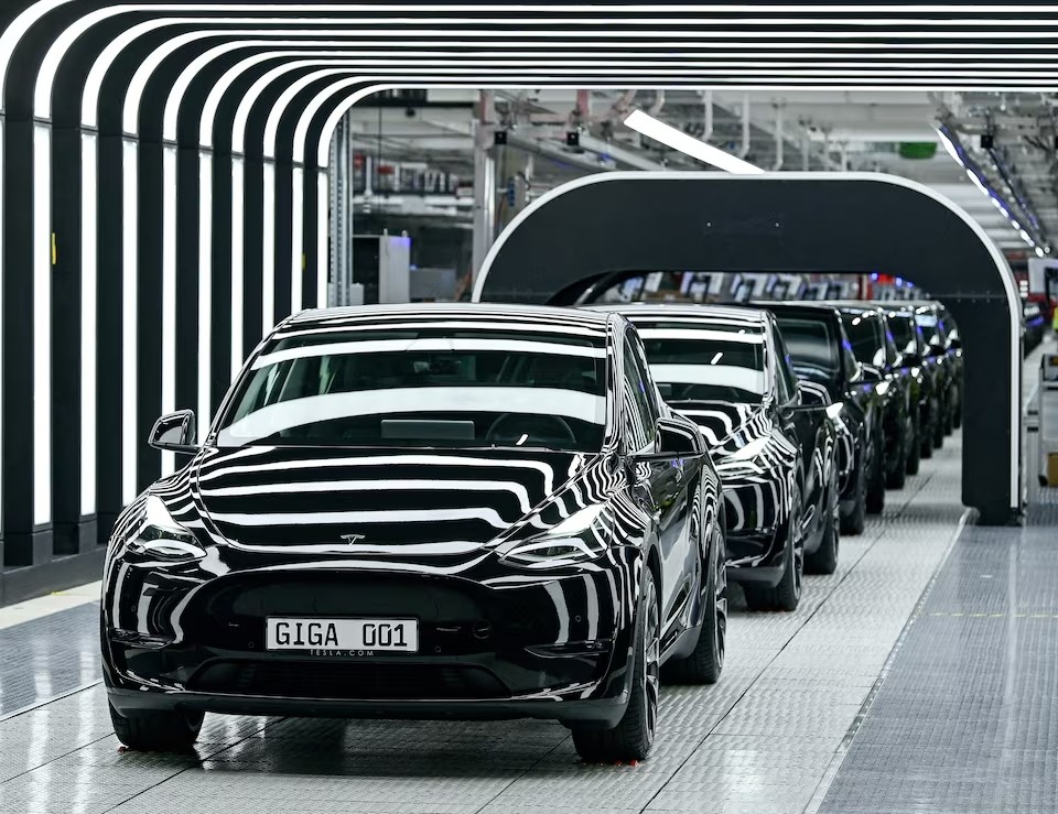 | Những chiếc xe Model Y được chụp ảnh trong lễ khai trương Tesla Gigafactory ở Gruenheide, Đức. (Ảnh: Reuters) |