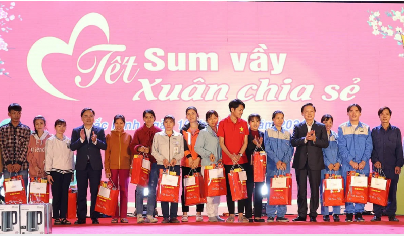 Mới đây, tại Khu công nghiệp Yên Phong (Bắc Ninh), Liên đoàn Lao động tỉnh Bắc Ninh đã khai mạc chương trình Tết sum vầy - Xuân chia sẻ - Ngày hội công nhân - Chợ Tết Công đoàn năm 2024. Phó Thủ tướng Trần Hồng Hà đã tới dự và trao các phần quà Tết cho công nhân, người lao động.