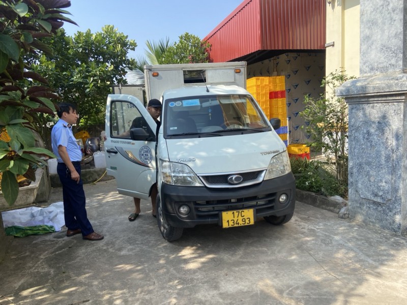 Theo đó, sáng cùng ngày, lãnh đạo Cục Quản lý thị trường tỉnh Thái Bình đã chỉ đạo Đội Quản lý thị trường Số 1 chủ trì, phối hợp với Đồn Biên phòng Cửa Lân (Bộ đội Biên phòng tỉnh Thái Bình), Chi cục Chăn nuôi và Thú y (Sở Nông nghiệp và Phát triển Nông thôn tỉnh Thái Bình) tiến hành khám phương tiện vận tải là xe ô tô mang biển kiểm soát 17C-134.93, đang dừng đỗ tại khu vực thôn Chí Cường, xã Nam Cường, huyện Tiền Hải, tỉnh Thái Bình.