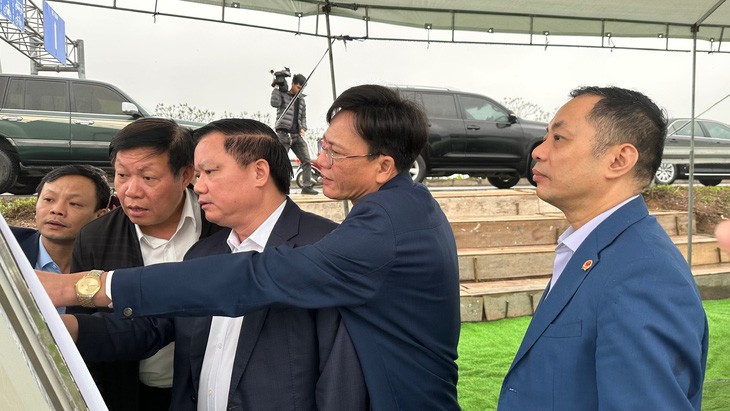 Lãnh đạo tỉnh Thái Bình, Bộ Y tế và các nhà đầu tư nghiên cứu thực địa tại xã Quỳnh Trang, huyện Quỳnh Phụ. |