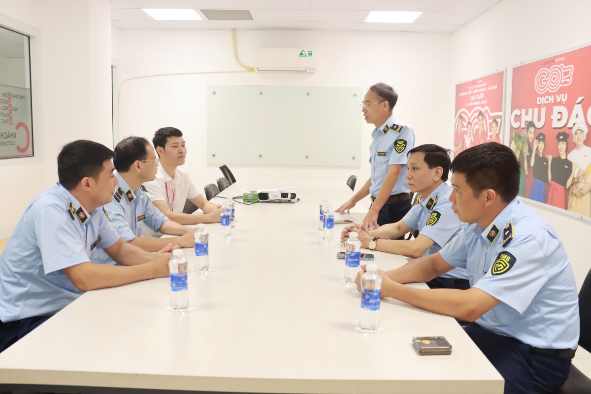| Đoàn công tác của lực lượng QLTT Thái Bình làm việc với đại diện Siêu thị Go! Thái Bình (Ảnh: Cục QLTT Thái Bình) |