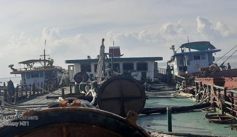 | Tàu Hà An 01 đã được trục vớt thành công . Ảnh Bộ đội biên phòng Thái Bình cung cấp |