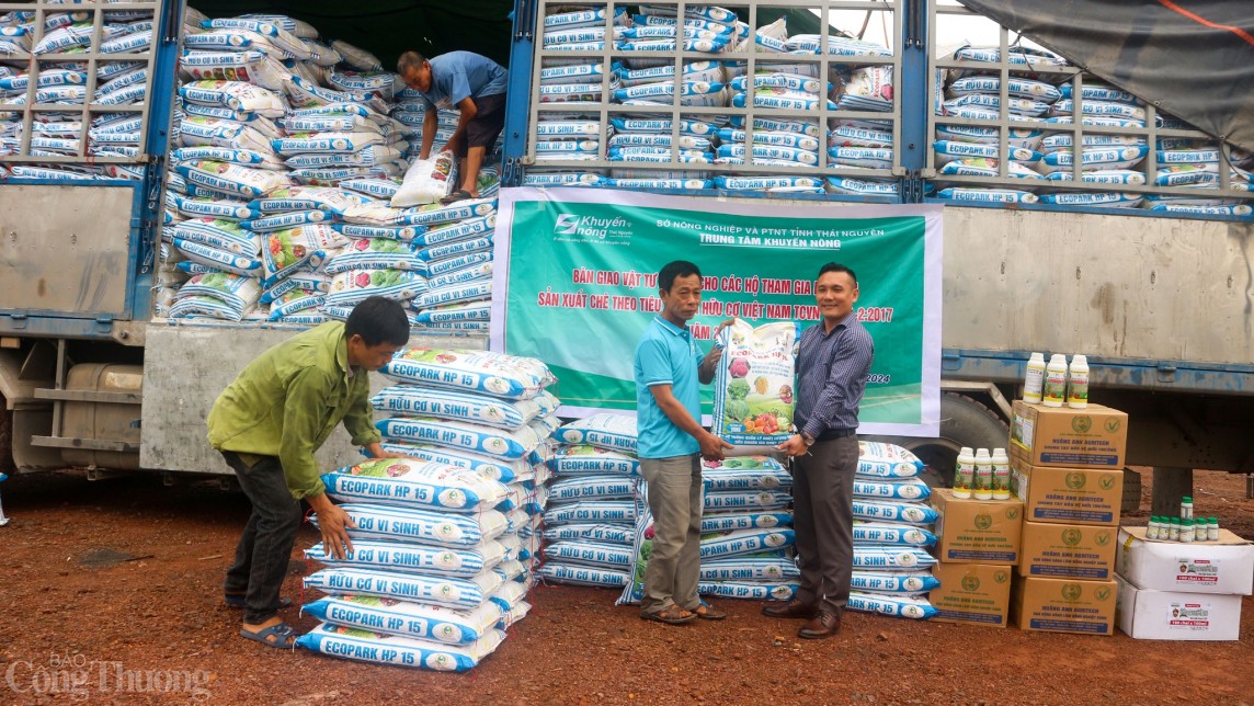 | Trung tâm Khuyến nông tỉnh cấp vật tư hỗ trợ cho Hợp tác xã chè trung du Tân Cương, Hợp tác xã trà và du lịch cộng đồng Tiến Yên. (Ảnh: K.N) |