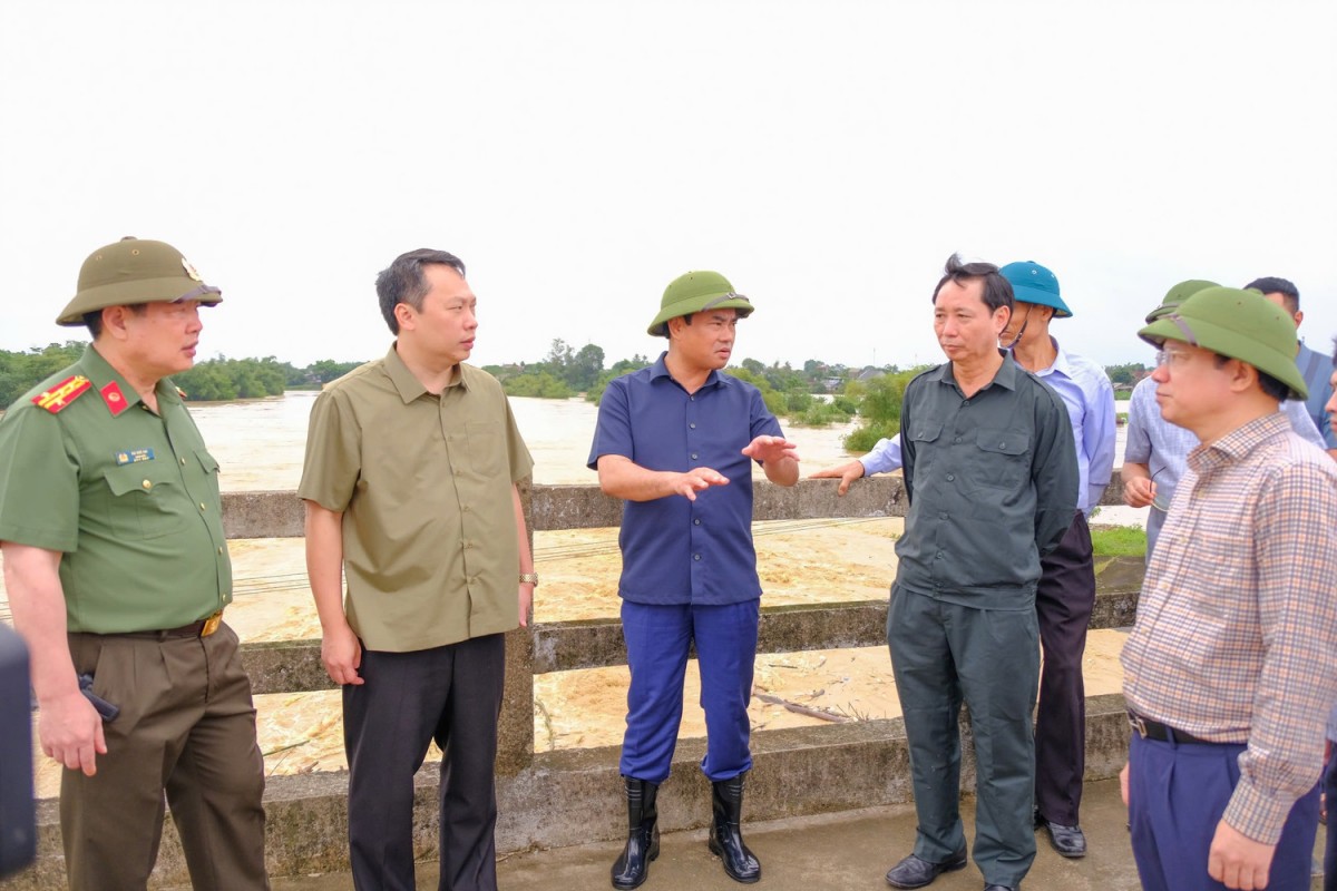 | Bí thư Tỉnh ủy Thái Nguyên Trịnh Việt Hùng (thứ 3 từ trái sang) và Chủ tịch UBND tỉnh Thái Nguyên Nguyễn Huy Dũng (thứ 2 từ trái sang) trực tiếp chỉ đạo khắc phục hậu quả lũ lụt tại hiện trường |