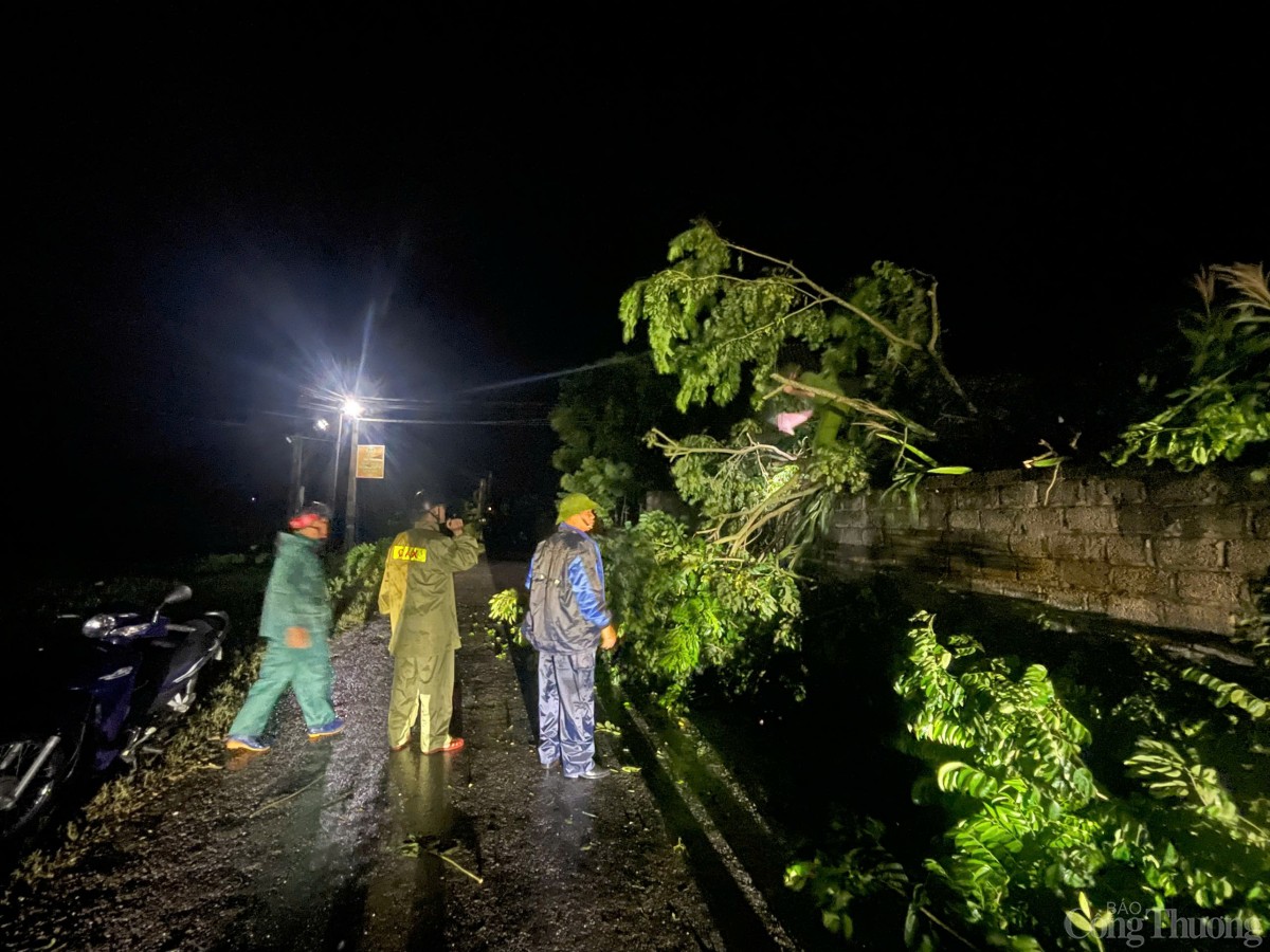 "Hiện chúng tôi đang tiếp tục cùng với người dân dọn dẹp các khu vực cây đổ gãy, hỗ trợ dựng lại cột điện, đảm bảo an ninh, an toàn và trật tự trên địa bàn"- Trưởng công an xã Phùng Địch Long cho hay.