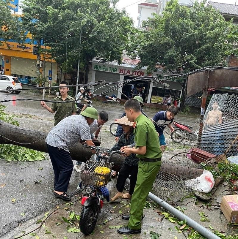 | Công an xã Na Mao, huyện Đại Từ hỗ trợ người dân dọn dẹp cây xanh gãy đổ |