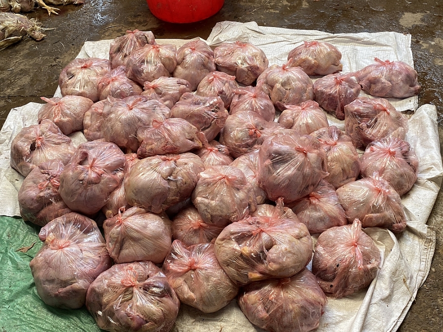 Tại thời điểm kiểm tra, Đoàn kiểm tra phát hiện tại sân nhà ông Nhiệm có 2.894 kg gà chết (loại gà công nghiệp) đã biến đổi màu sắc, bốc mùi hôi thối và 265 kg gà đã thịt đã đóng túi.