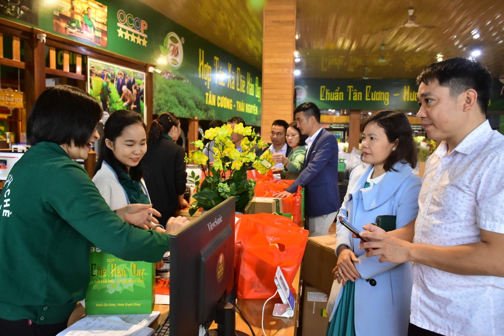 Việc quảng bá, giới thiệu, bán sản phẩm OCOP cũng được thực hiện ở các siêu thị, điểm du lịch, điểm dừng nghỉ trên cao tốc. Tại hai trạm dừng nghỉ Hải Đăng bên cao tốc Hà Nội - Thái Nguyên rộng hàng nghìn m2, được thiết kế sạch đẹp, văn minh, trưng bày và bán hàng trăm sản phẩm OCOP của tỉnh, mỗi ngày thu hút hàng nghìn người dừng chân tham quan, mua hàng, tiêu thụ số lượng lớn sản phẩm cho các chủ thể.