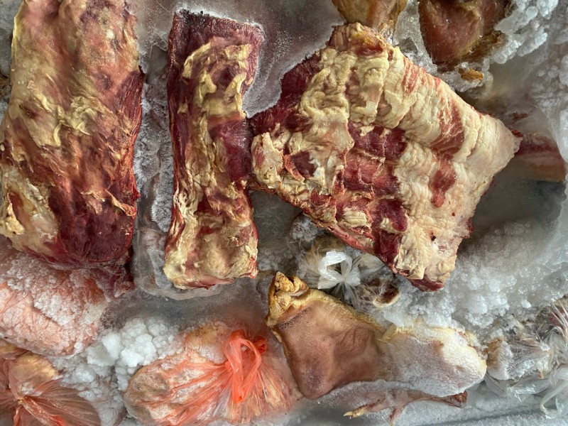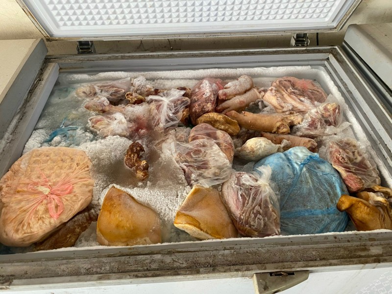 | Thịt lợn đông lạnh đã chết trước khi mổ, có dấu hiệu bốc mùi. |