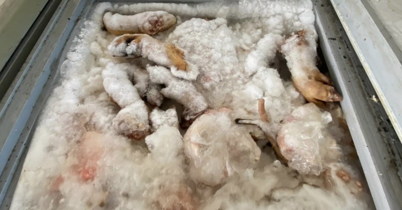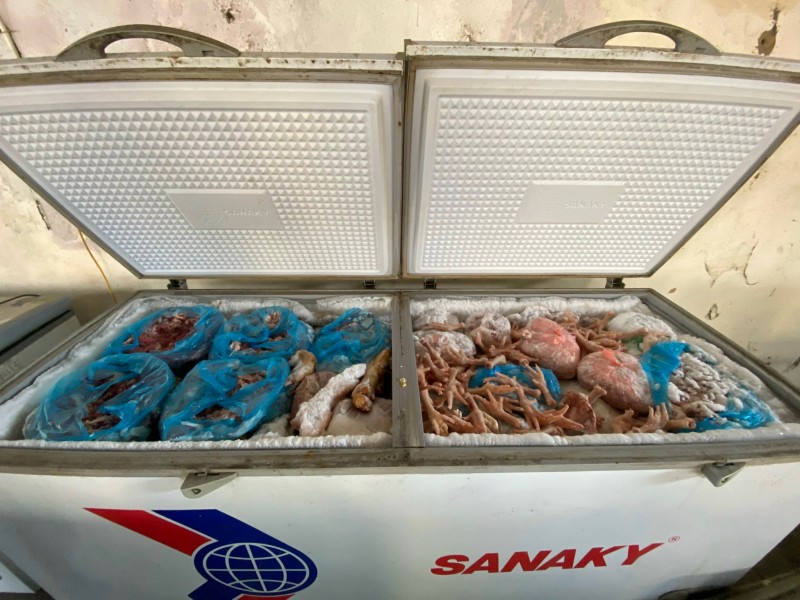 Số hàng hóa này được chứa trữ trong 15 thùng xốp và 5 tủ bảo ôn. Tất cả hàng hóa không có chứng nhận đã kiểm dịch của cơ quan thú y, đang có dấu hiệu ôi thiu, bốc mùi, biến đổi màu sắc và hình dạng ban đầu.