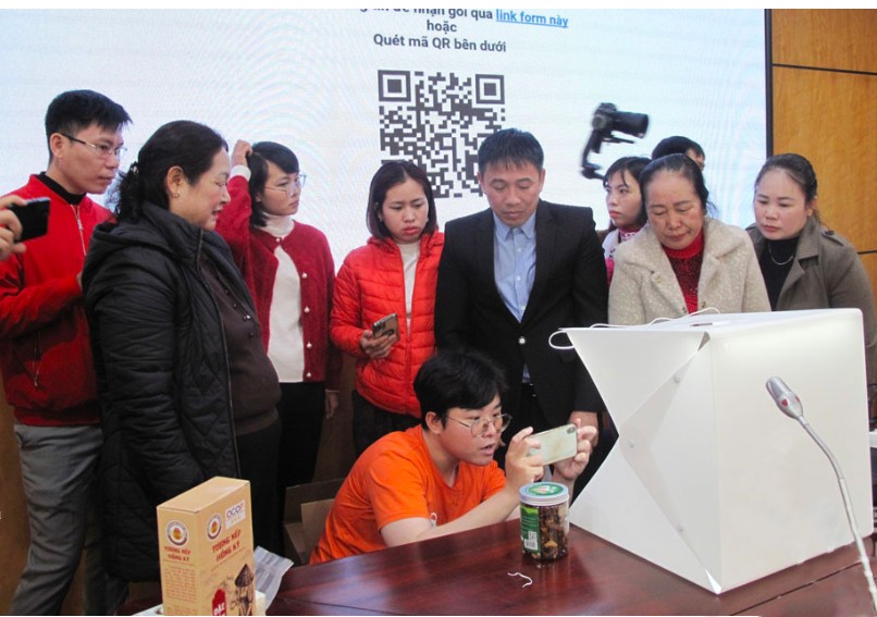 | Ngành Công Thương Thái Nguyên phối hợp với các nền tảng thương mại điện tử hướng dẫn cho bà con đưa sản phẩm lên "sàn". Ảnh: QH |