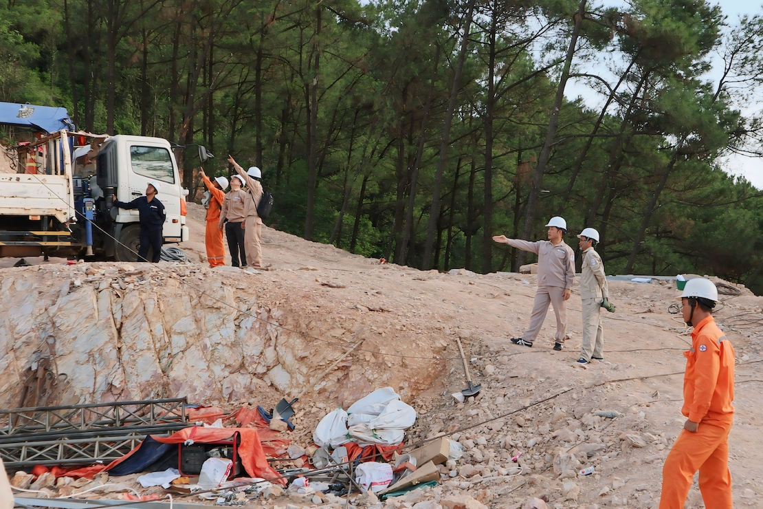 | Ông Văn Đình Hậu - Giám đốc PC Gia Lai cùng đội xung kích tại hiện trường dự án (Ảnh: CTV) |