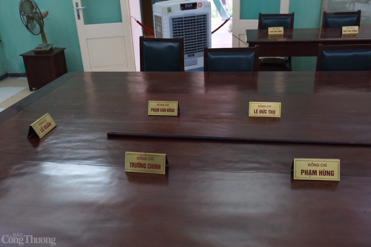 | Hiện nay, trên bàn có 24 tấm biển tên đại diện cho 24 đồng chí tham dự cuộc họp Bộ Chính trị mở rộng cuối năm 1974, đầu năm 1975. |