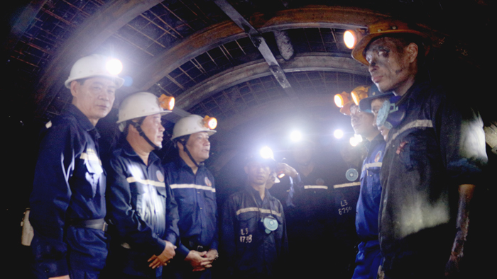 | Lãnh đạo Công đoàn TKV và lãnh đạo công ty kiểm tra công tác Đào lò tại Phân xưởng ĐL3, Công ty Than Quang Hanh - TKV |
