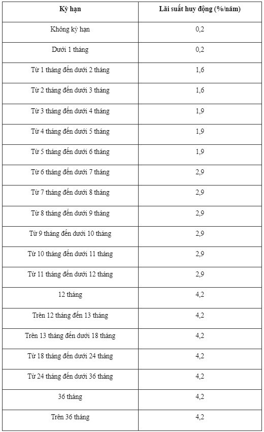 Lãi suất tiết kiệm ở kỳ hạn từ 12 tháng trở lên là 4,2%/năm.