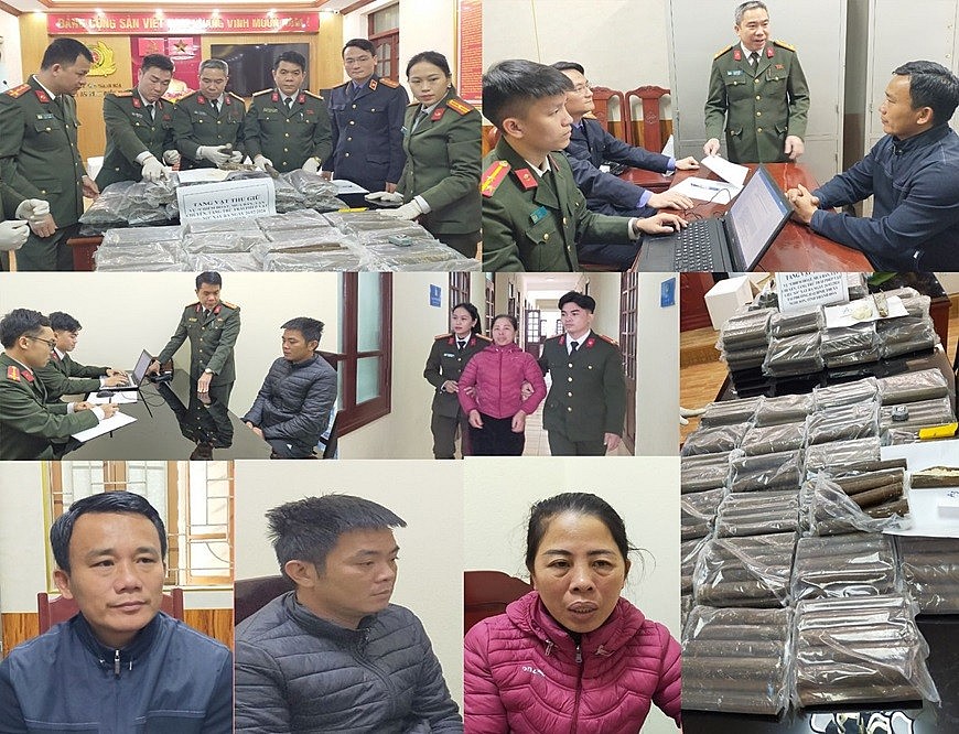 | Lực lượng Công an Thanh Hóa đã nhanh chóng bắt 3 đối tượng Lê Hữu Vịnh, Đàm Minh Thành, Nguyễn Thị Thoa và thu giữ toàn bộ tang vật vụ án. Ảnh: Công an tỉnh Thanh Hóa |