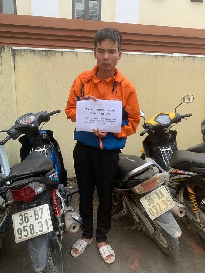 Chỉ sau 2 ngày điều tra, xác minh, Công an huyện Triệu Sơn đã điều tra, làm rõ và bắt giữ đối tượng Hoàng Trọng Lương, chính là thủ phạm gây ra 3 vụ trộm cắp xe máy nói trên.