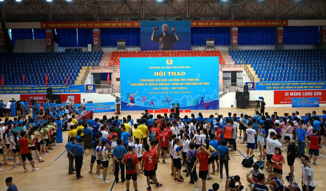 Sau 2 ngày thi đấu sôi nổi, chiều nay 7/7/2024, Liên đoàn Lao động tỉnh Thanh Hóa đã tổ chức bế mạc Hội thao công nhân, viên chức, lao động tỉnh Thanh Hóa. Dự lễ bế mạc có ông Võ Mạnh Sơn, Chủ tịch Liên đoàn Lao động tỉnh Thanh Hóa, đại diện lãnh đạo các sở, ngành của tỉnh, Liên đoàn Lao động các huyện, thị xã, thành phố và đông đảo công nhân, viên chức lao động trên địa bàn.