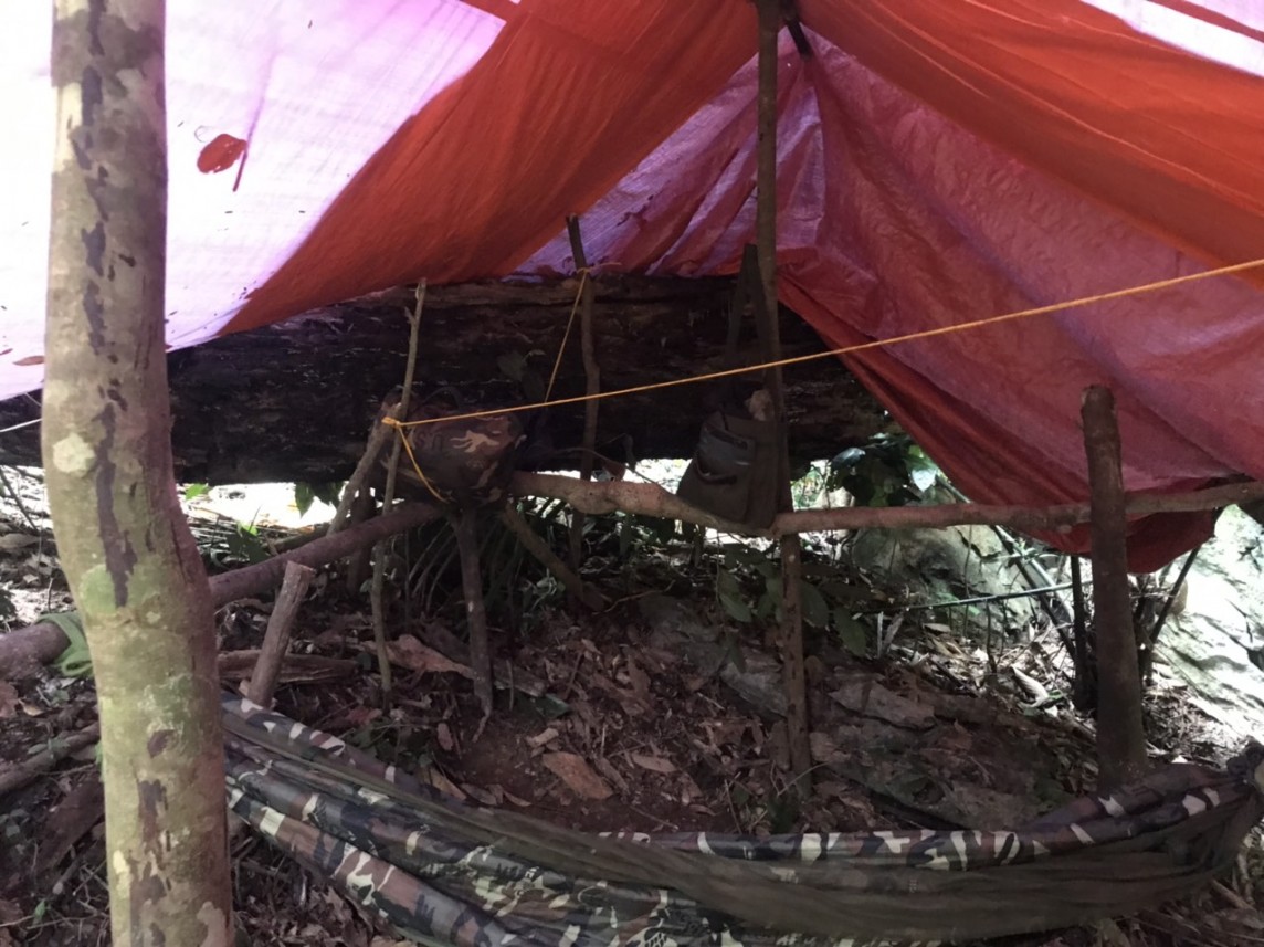 | Lán trại của các đối tượng khai thác vàng trái phép. (Ảnh: Quốc Huy) |