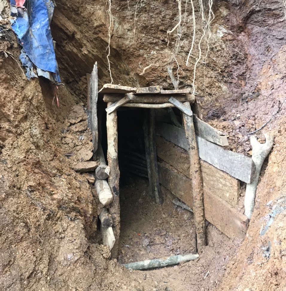 Cửa hầm khai thác vàng trái phép xã Thành Sơn, huyện Mai Châu, Hòa Bình. (Ảnh: Quốc Huy) |