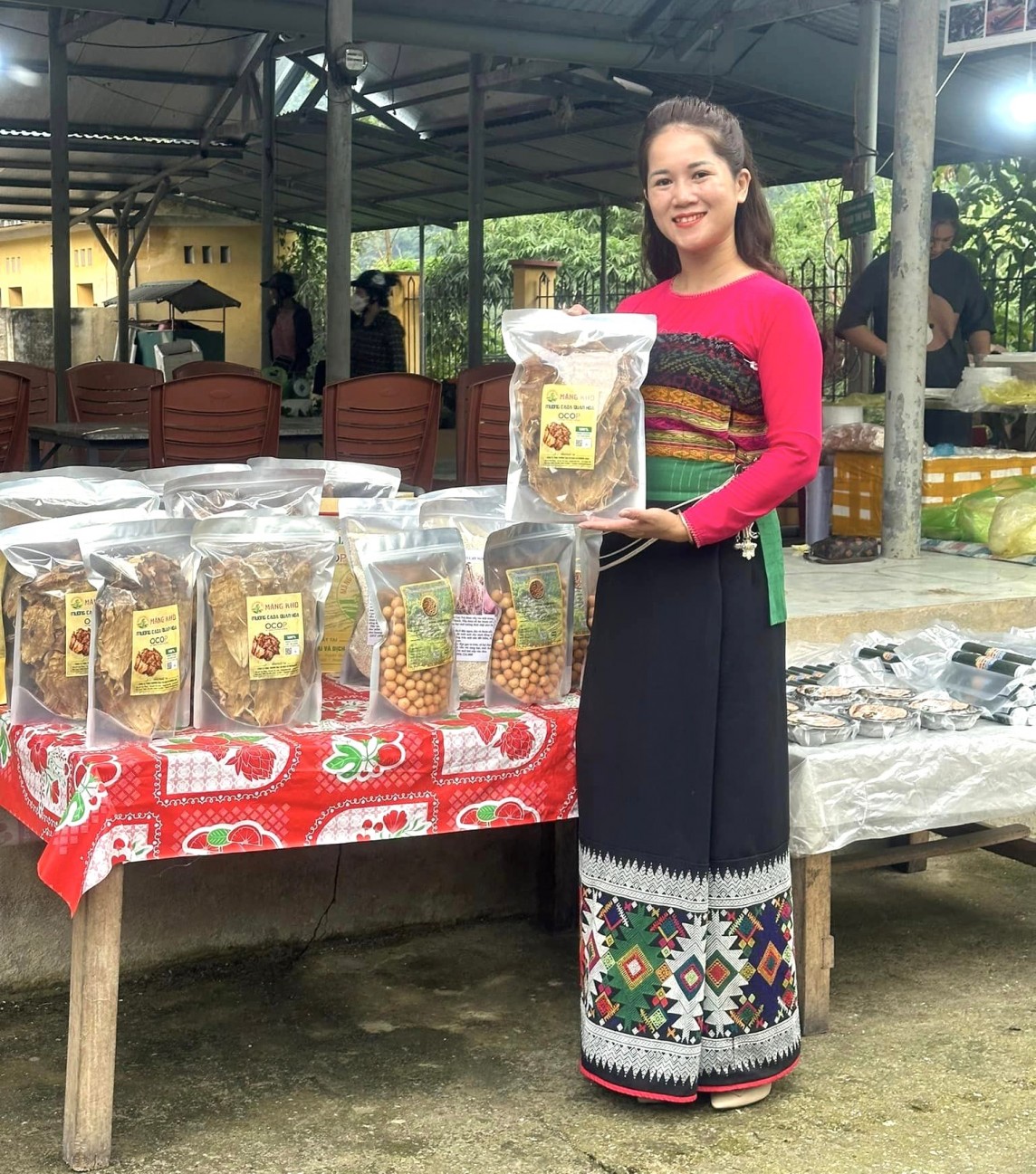 Ngoài các sản phẩm OCOP như kẹo nhãn, mật ong, măng khô, gạo nếp,... chợ phiên đêm còn có nhiều món ẩm thực vùng cao, như: Thịt trâu gác bếp, thắng cố, bánh ú, cá nướng... Việc đảm bảo vệ sinh an toàn thực phẩm, phòng cháy, chữa cháy, an ninh trật tự cũng được quan tâm thường xuyên.