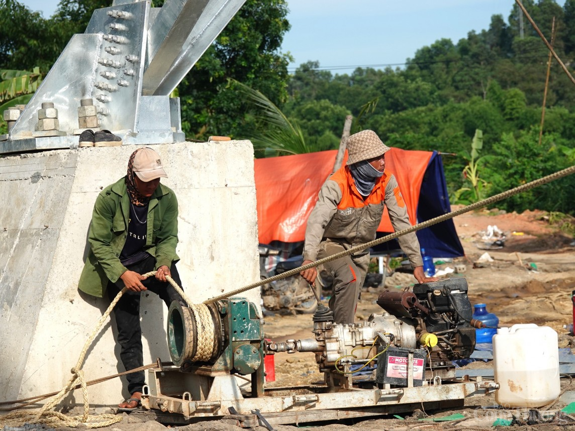 | Nhóm công nhân này thuộc nhà thầu thi công là Công ty TNHH Phương Hạnh, chủ yếu họ đến từ các tỉnh như Bình Định, Bình Thuận, Ninh Thuận. (Ảnh: Quốc Huy) |