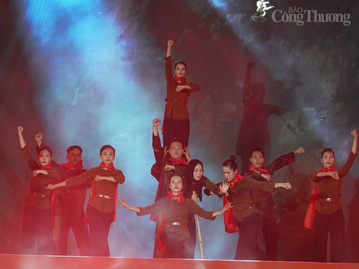 “Hang Co Phường - Khúc tráng ca bất tử” được dàn dựng công phu, tái hiện cuộc chiến đấu của quân và dân ta trong cuộc kháng chiến chống thực dân Pháp trong thế kỷ trước; thể hiện tinh thần hăng hái, anh dũng hy sinh của thanh niên xung phong, dân công hỏa tuyến tỉnh Thanh Hóa mở đường, vận chuyển lương thực, thực phẩm, vũ khí lên vùng Thượng Lào và Tây Bắc, phục vụ chiến dịch Điện Biên Phủ. Ảnh: Quốc Huy |