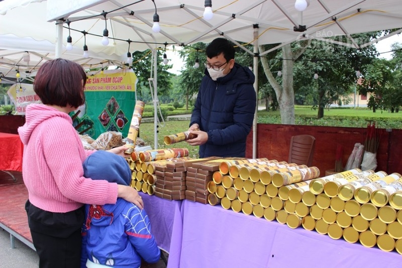 | Gian hàng trưng bày sản phẩm OCOP hương bài Yên Cát, huyện Như Xuân, tỉnh Thanh Hóa |