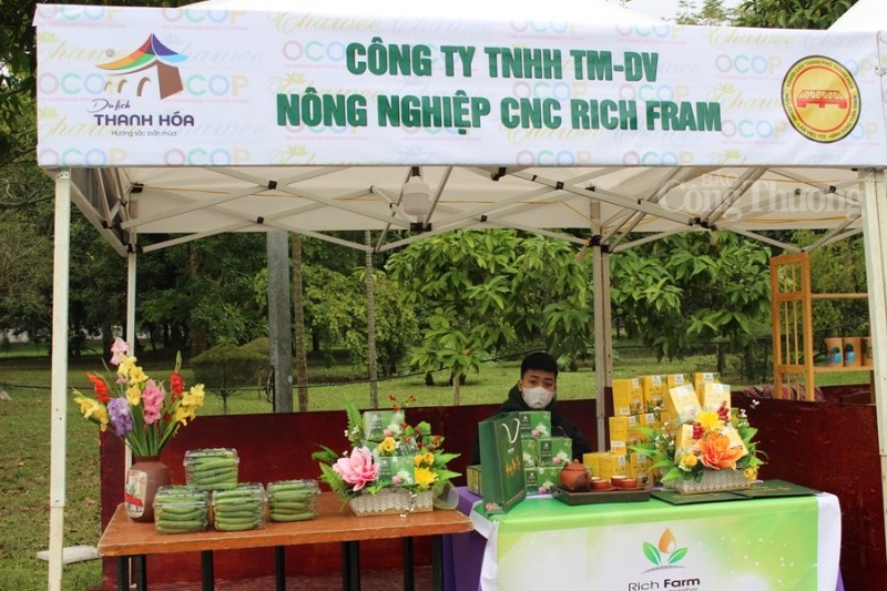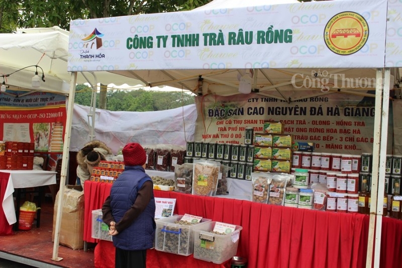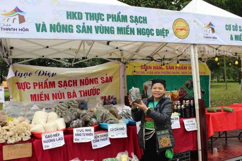| Gian hàng trưng bày các sản phẩm thực phẩm sạch nông sản đến từ huyện miền núi Bá Thước. |