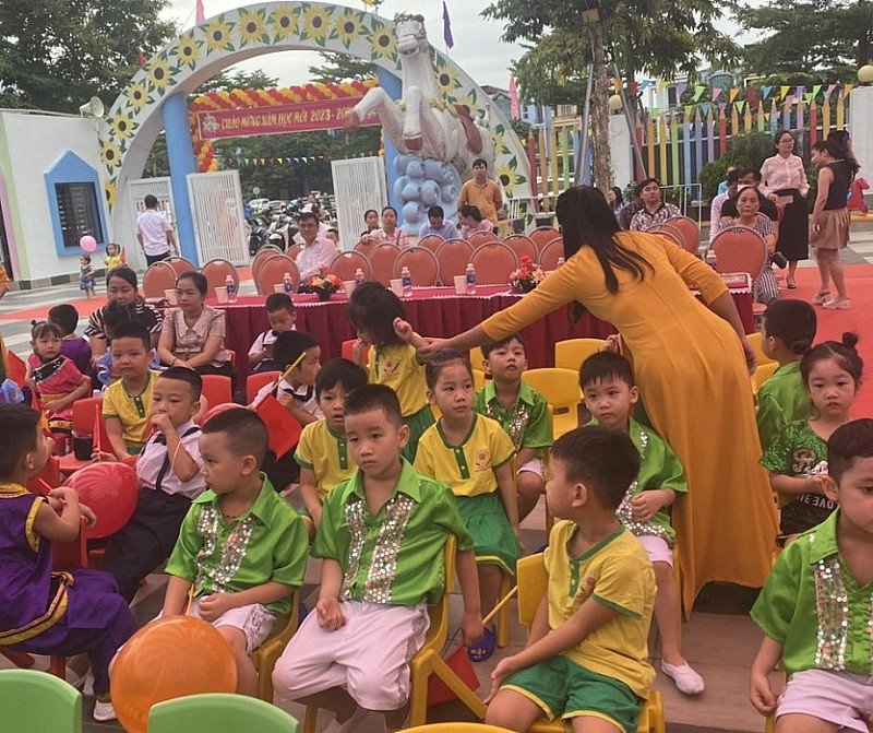 | Cô và trò Trường mầm non Hoa Hướng Dương, phường Đông Vệ, TP. Thanh Hóa hân hoan trong ngày khai giảng năm học mới |