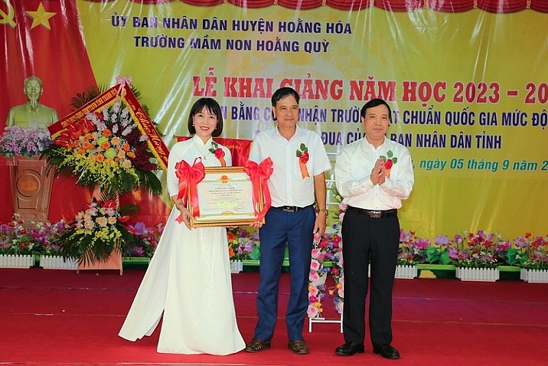 | Ông Lại Thế Nguyên, Phó Bí thư Thường trực Tỉnh ủy Thanh Hóa trao Bằng công nhận trường đạt chuẩn Quốc gia mức độ 2 cho Trường Mầm non Hoằng Quỳ, huyện Hoằng Hóa |