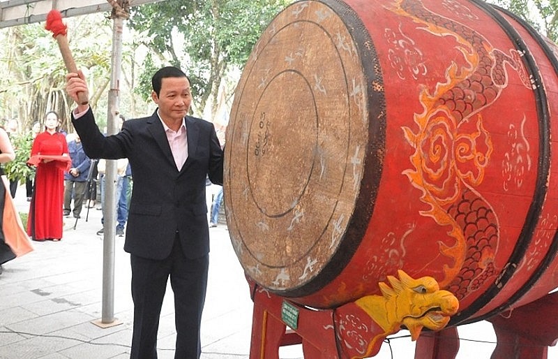 | Ông Đỗ Minh Tuấn, Chủ tịch UBND tỉnh Thanh Hóa đánh trống Khai hội Xuân Giáp Thìn 2024 |