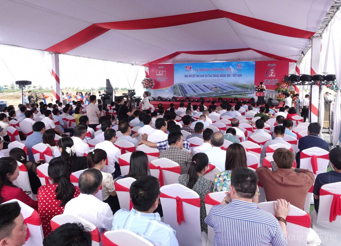 | Động thổ dự án nhà máy dệt may nghìn tỷ tại Cụm công nghiệp Thái - Thắng, huyện Hoằng Hóa, Thanh Hóa. (Ảnh: Quốc Huy) |