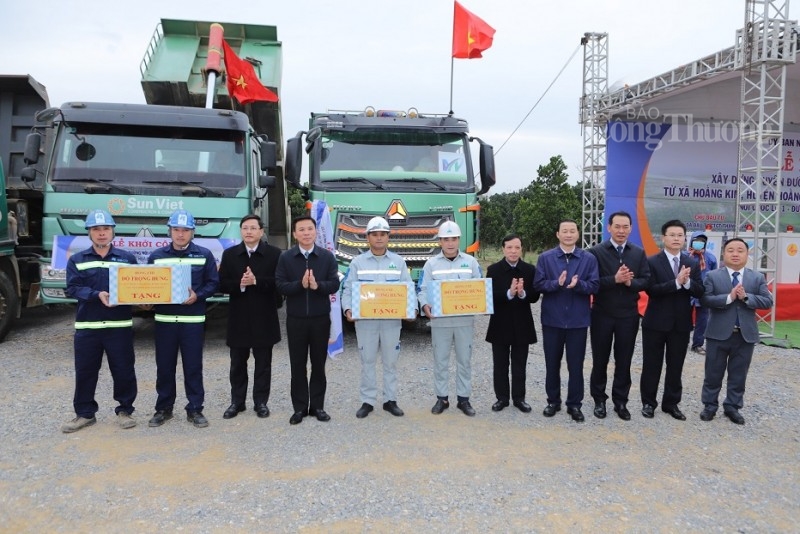 | Lãnh đạo tỉnh Thanh Hóa cùng các đại biểu ấn nút khởi công xây dựng tuyến đường nối Quốc lộ 1A với Quốc lộ 45, từ xã Hoằng Kim, huyện Hoằng Hóa đến xã Thiệu Long, huyện Thiệu Hóa. |