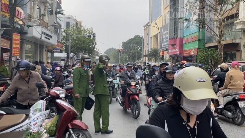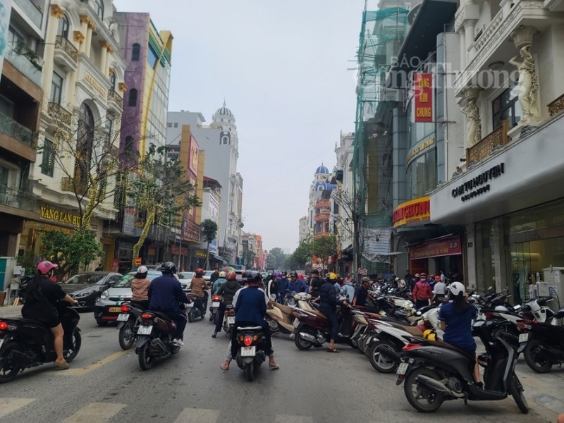 | Lực lượng Công an TP. Thanh Hóa đã có mặt để phân luồng, điều tiết giao thông trên tuyến phố Lê Hoàn, TP. Thanh Hóa - tuyến phố có nhiều cửa hàng vàng bạc đá quý. |