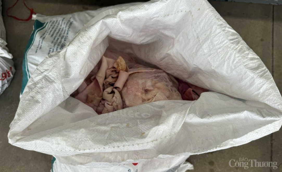 Sau quá trình làm việc, đoàn kiểm tra đã xác định hàng hóa trên là sản phẩm động vật trên cạn, cụ thể là gần 2 tấn bì lợn. Toàn bộ hàng hóa trên đều bốc mùi ôi thiu, biến đổi màu sắc và không có hóa đơn, chứng từ chứng minh nguồn gốc hợp pháp.