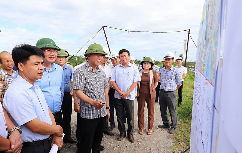 | Chủ tịch UBND tỉnh Thanh Hóa Đỗ Minh Tuấn cùng lãnh đạo các sở, ngành kiểm tra, đôn đốc tiến độ các dự án đầu tư công trên địa bàn huyện Quảng Xương. |