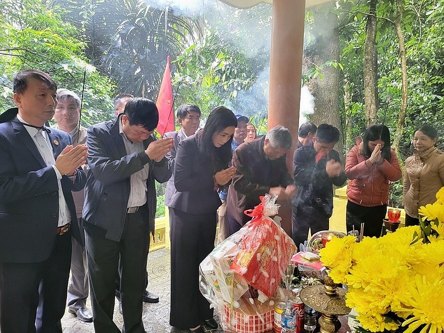 | Bà Vũ Thị Hương, Giám đốc Sở Lao động, Thương binh và Xã hội Thanh Hóa cùng đoàn công tác dâng hoa, dâng hương các Anh hùng Liệt sĩ tại thành cổ Quảng Trị (Ảnh VTH) |