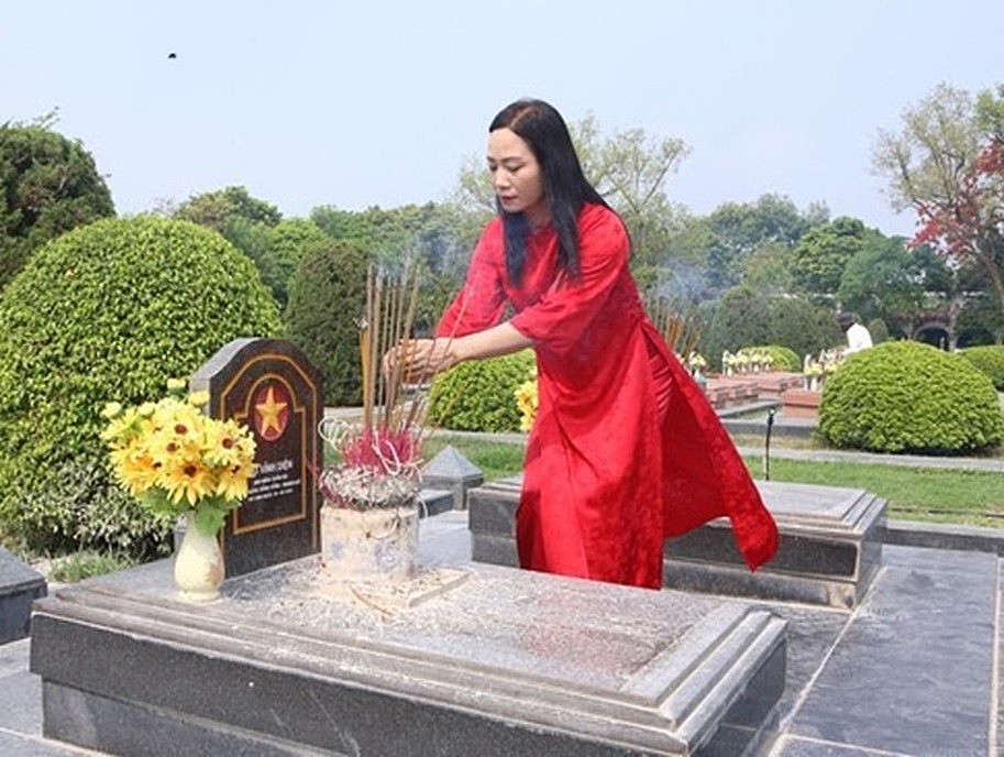 | Bà Vũ Thị Hương, Giám đốc Sở Lao động, Thương binh và Xã hội Thanh Hóa viếng Nghĩa trang liệt sĩ đồi A1, tỉnh Điện Biên (Ảnh VTH). |