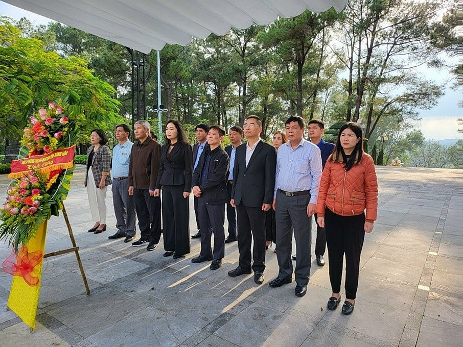 | Đoàn công tác của Sở Lao động, Thương binh và Xã hội Thanh Hóa dâng hương tại Nghĩa trang liệt sĩ Trường Sơn (Ảnh VTH). |