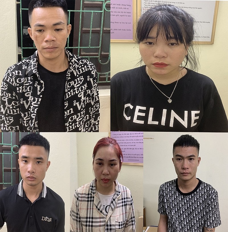 Theo đó, 5 đối tượng bị bắt giữ gồm: Lê Thị Ngọc (sinh năm 1993), ở phường Quảng Thành, TP. Thanh Hóa; Lương Thị Lệ (sinh năm 2001), ở xã Cát Tân, huyện Như Xuân. Cả 2 đều là nhân viên quán karaoke Thùy Dung ở xã Quảng Trường; Trần Xuân Tiệp, (sinh năm 1994), ở xã Trường Giang, huyện Nông Cống; Đặng Minh Toàn (sinh năm 2000) và Hoàng Văn Thúy (sinh năm 2003), đều ở xã Quảng Hợp, huyện Quảng Xương.