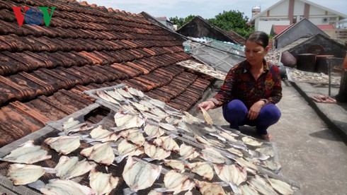 | Cá chết, nhiều hộ dân mang về phơi khô. |