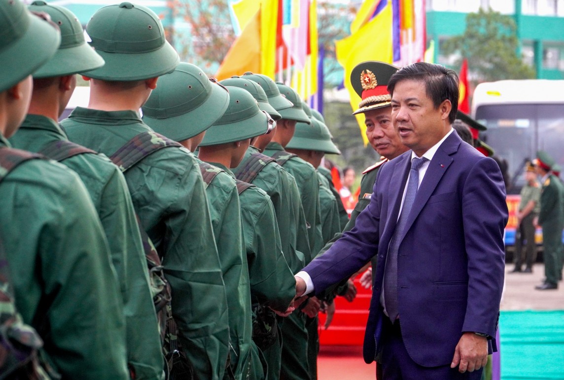 | Bí thư Tỉnh ủy Quảng Nam Lương Nguyễn Minh Triết động viên tân binh lên đường nhập ngũ. Ảnh: H.Q |