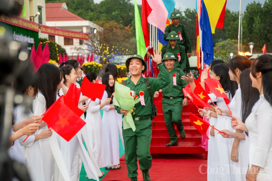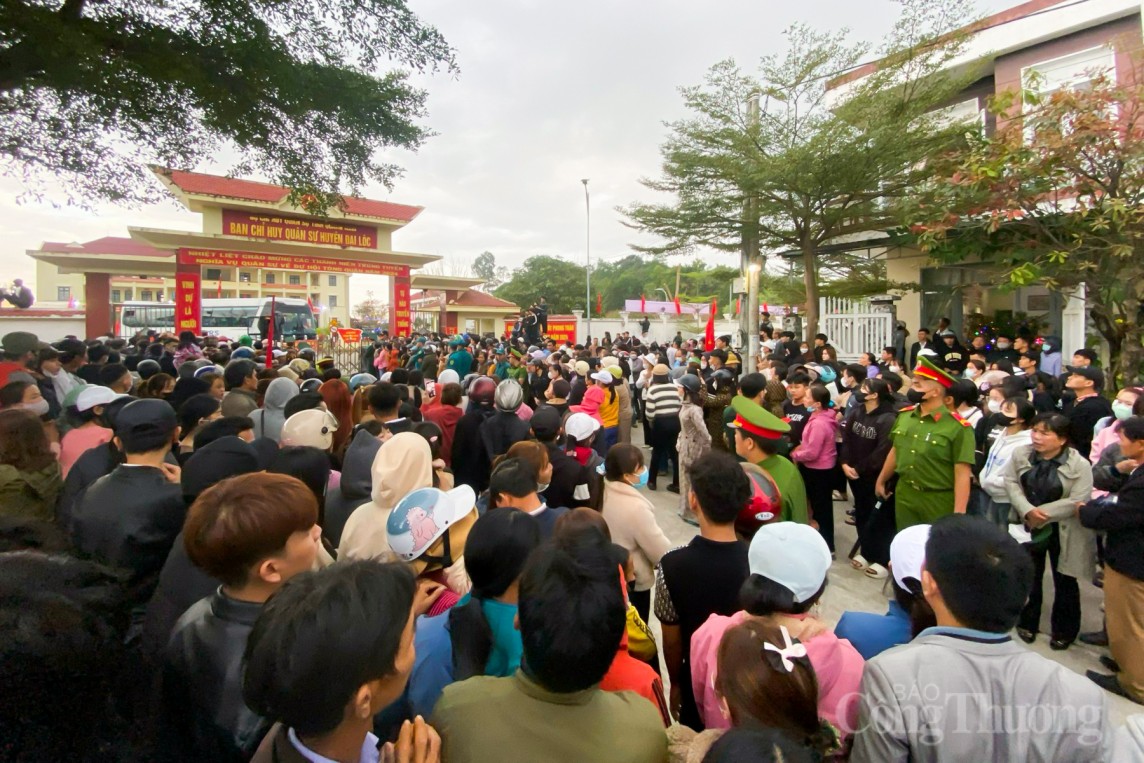 Từ sáng sớm, trên khắp các ngả đường đổ về nơi giao nhận quân tại các địa phương đã có hàng nghìn người dân tập trung về để dự lễ tiễn đưa thanh niên lên đường nhập ngũ.