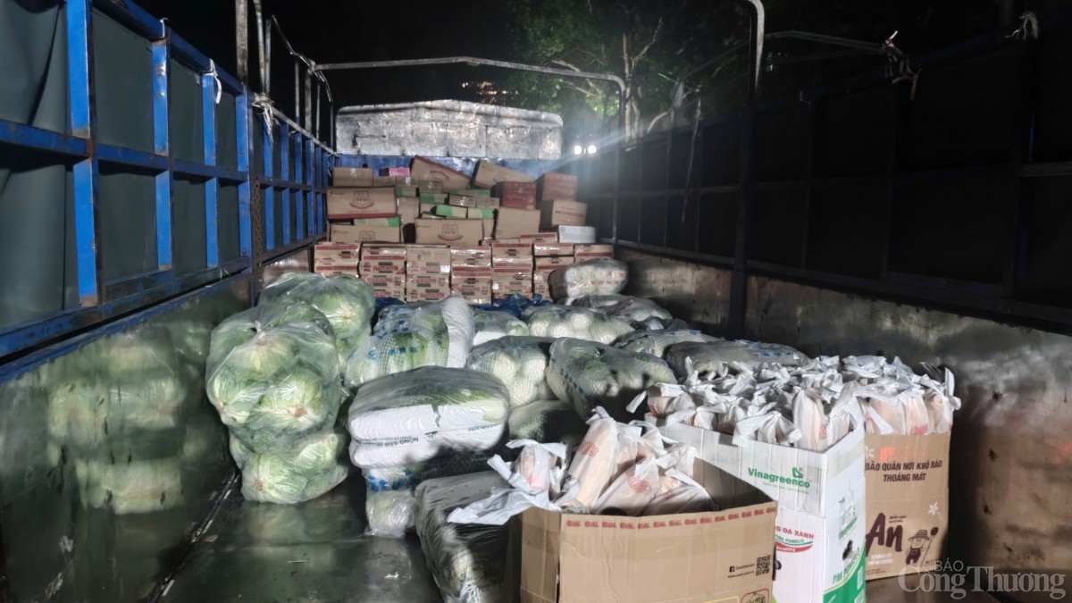 | Quản lý thị trường Lào Cai đã mua rau xanh, bánh mì, nước sạch... lập các điểm phát hàng miễn phí tới bà con huyện Bảo Yên, Lào Cai |